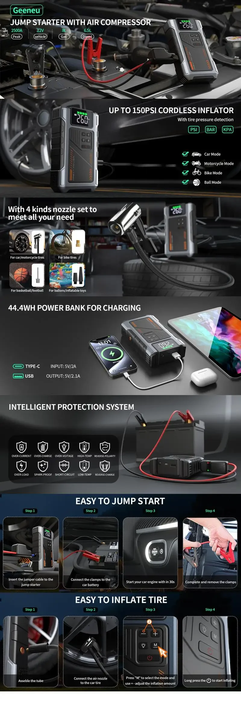 Brand Name: ZRGAE Hign-concerned Chemical: None Origin: US(Origin) Ships From United States Reviews There are no reviews yet. Be the first to review “Portable Car Jump Starter With Air Compressor 2500A Peak (8.0L Gas, 6.5L Diesel) With 150 PSI Tire Inflator”Cancel ReplyYour email address will not be published. Required fields are marked *Your rating * Rate… Perfect Good Average Not that bad Very poor Name *Email *Your review * I accept the Privacy Policy Save my name, email, and website in this browser for the next time I comment. Submit